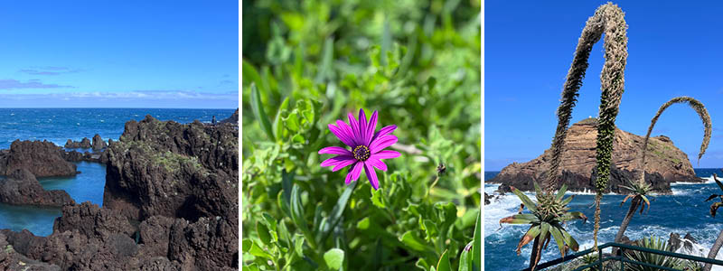 Porto Moniz er endestationen for i dag, og vi når frem efter at have forceret bjerget og kommet hele vejen ned til havet igen. Det er fascinerende, hvordan vi kan komme fra højderne til Atlanterhavets blå bølger på nogle få minutter – takket være vores buschauffør José, der klarer jobbet godt. I Porto Moniz ses Madeiras vulkanske natur tydeligt – ikke mindst gennem de naturskabte havbassiner. Bølgerne er alt for kraftige til, at vi kan bade i dag, og i stedet sætter vi os til rette på restauranten, hvor vi får serveret stegt espada – Madeiras kendte sværdfisk, der lever på mere end 1000 meters dybde.