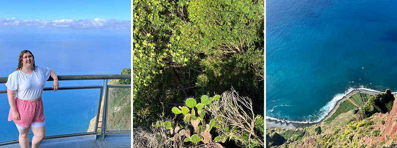 Endnu en vidunderlig dag på Madeira! I dag skal vi på udflugt langs den sydlige kyst, og vi sætter kursen mod Cabo Girão – det kendte udsigtspunkt nogle kilometer vest for vores hotel og Funchal. Vi kommer frem, præcis da rundvisningen går i gang, og da vi vover os ud på den gennemsigtige platform af plexiglas, kan vi se næsten 600 meter lige ned i havet og kyststrækningen. Selv om sigtbarheden ikke er på 100 procent, er det svært ikke at blive imponeret af det uendelige hav, som på denne afstand ser både roligt og harmonisk ud.