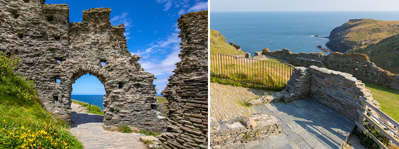 Videre mod den vilde kystlinje i Cornwall står Tintagel Castle, der er indhyllet i Kong Arthur-legendens mystik – slottet siges at være kongens fødested. Ruinerne af middelalderborgen ligger dramatisk på en klippe, hvorfra der er spektakulær udsigt over Atlanterhavet.