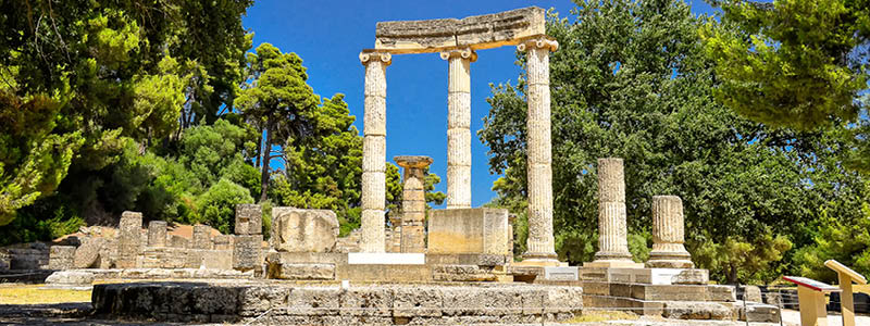 Fra den tidlige morgenstund drager vi videre langs Peloponnes' vestkyst. Forude venter et besøg i det antikke Olympia. De første olympiske lege fandt sted her i 776 f.Kr. og blev afholdt hvert fjerde år helt frem til 393 e.Kr. til ære for guden Zeus. Zeus havde til huse på Olympus bjerget, deraf navnet. Efter år 393 forbød den romerske kejser tilbedelsen af hedenske guder og de olympiske lege blev først genoptaget i 1896 i Athen. Selvom stedet er velbesøgt, hersker her alligevel en dejlig og fredfyldt atmosfære.