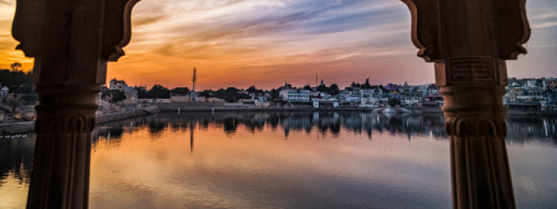 Billede: Pushkar i solnedgang.