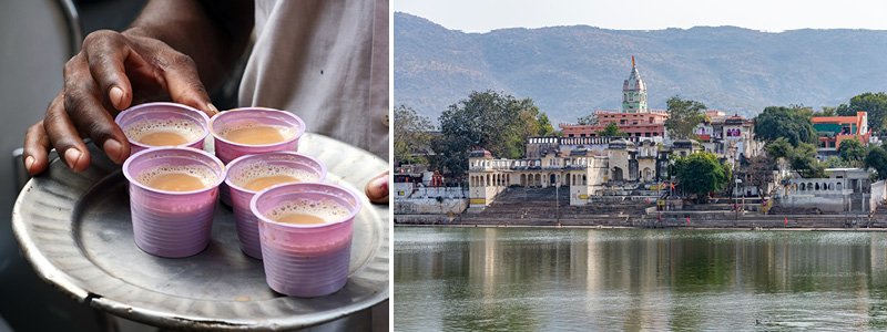 Billeder: Lokalbrygget te og den smukke Pushkar-sø.