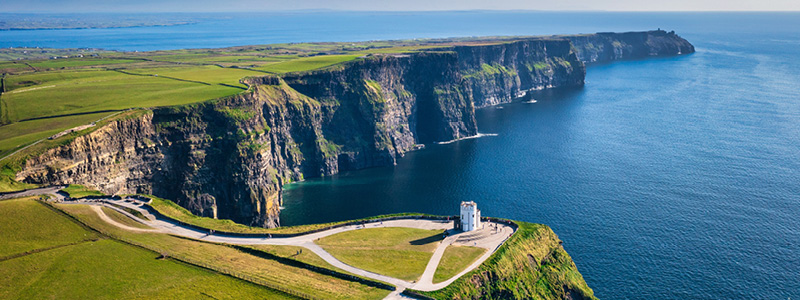 De stejle klipper ved 'Cliffs of Moher' er et fascinerende syn og hører til blandt Irlands topattraktioner. Klipperne findes over en strækning på 8 km og rejser sig mere end 200 meter lodret op af havet på det højeste punkt. Det er ganske svært ikke at bliver imponeret. På en klar dag kan man se helt til Aran-øerne, Galway-bugten samt bjergene i Connemara mod nord og til Dingle-halvøen og Blakset-øerne mod syd. Fugleskrigene akkompagnerer oplevelsen af at være helt tæt på naturen. Tusindvis af havfugle yngler og lever på klipperne og hensætter tankerne til Færøernes fuglefjeld. Entré til Cliffs of Moher er inkluderet.