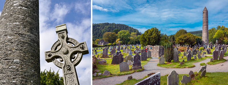 Efter et besøg på Kilkenny Castle kører vi til betagende Glendalough, et tidligt kristent pilgrimssted med klosterruiner omkranset af høje bjerge og spejlende søer.