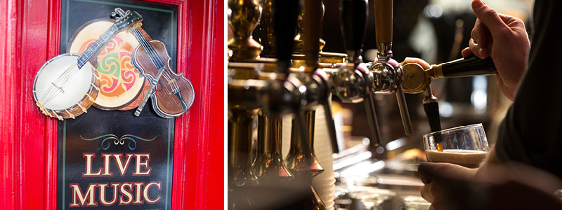 Og så er der pubberne, hvor vi kan foreslå et par stykker eller tre; besøg Dublins ældste pub Brazen Head, som ligger ved Liffey-floden, eller kig indenfor hos O'Donoghues, hvor The Dubliners startede deres karriere. En anden sjov, lille pub er The Dawson Lounge på Dawson Street – Dublins mindste pub.