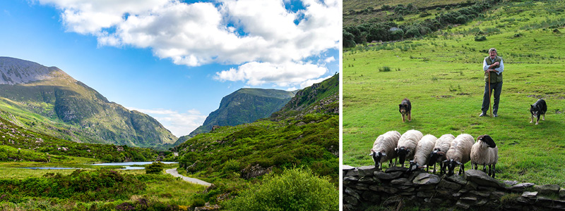 Billede: Landskabet ved Ring of Kerry og fårehyrde.