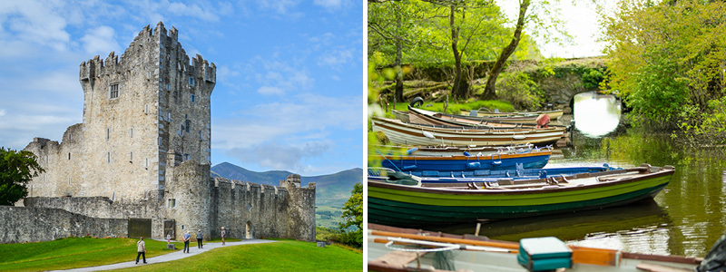 I skyggende af de rå tinder fra Irlands højeste bjerge ligger ældgammel skov, spektakulære vandfald og de rolige Lakes of Killarney, søerne Lough Leane, Muckross Lake og Upper Lake.