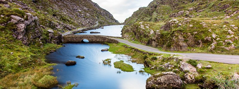 The Gap of Dunloe er en dramatisk bjergpassage, hvor du kan opleve det irske landskabs rå skønhed. Ruten snor sig gennem en smal dal og er flankeret af de imponerende MacGillycuddy's Reeks-bjerge og det lilla bjerg, Purple-Mountain. Her er et varieret terræn med snoede veje op gennem bjergpasset med søer og bække. Det er som at rejse tilbage i tiden, når vi vandrer i landskabet, der er formet af gletsjere og fyldt med sagn og myter.