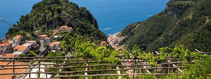 Fra Scala fortsætter vi op til bydelen Campidoglio, hvor vi kan beundre den fantastiske udsigt mod Ravello, Scala, Dragedalen og det smukke Middelhav. Vi går gennem Santa Catarina og baglandet i bjergene bag Ravello. Nu er vi rigtigt kommet på landet og du kan glæde dig til at møde autentiske landejendomme og øvrig herlig lokalkolorit. Vi når Ravello og vores hotel ad bagvejen via Lacco.
