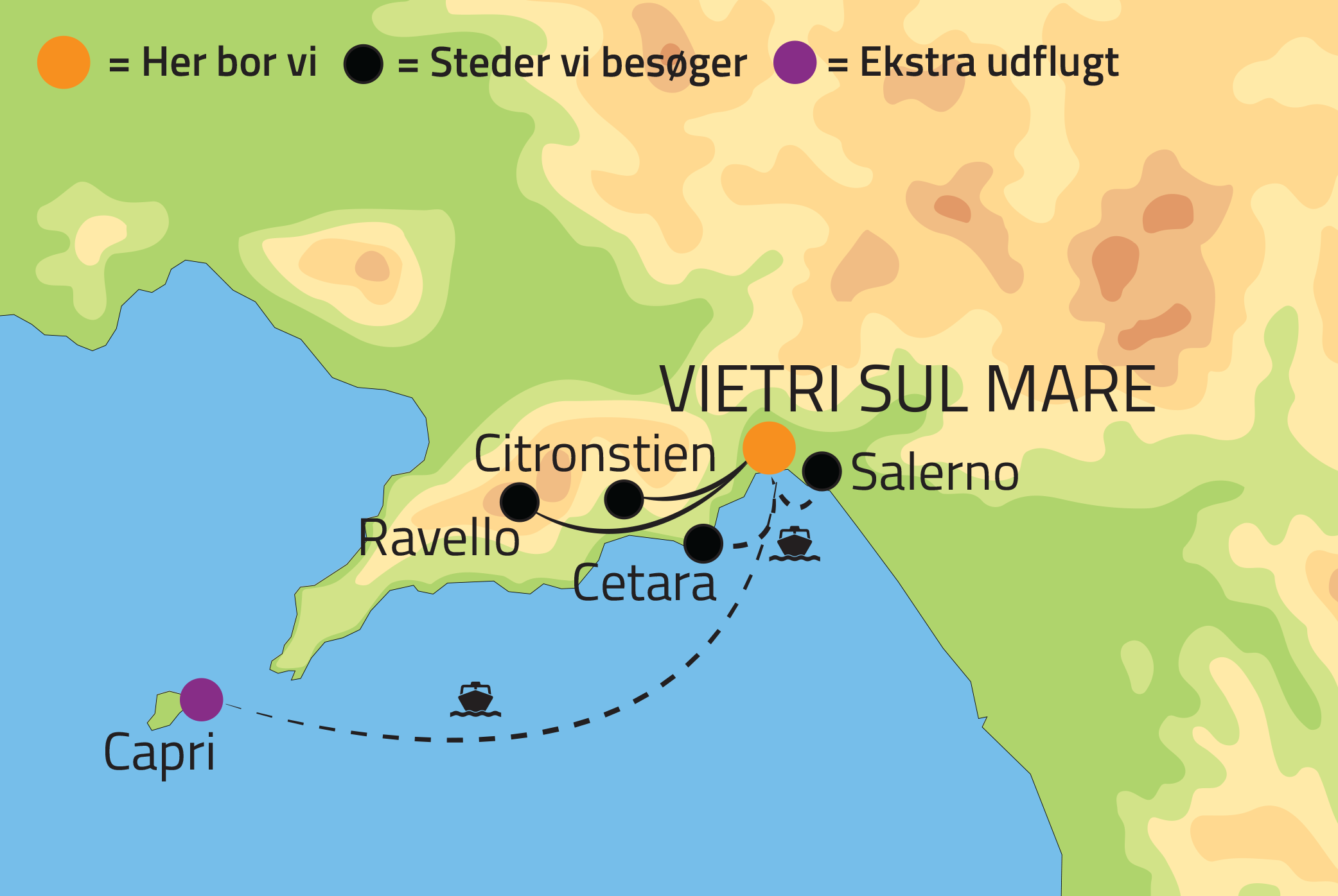 Kort over rejsen Amalfi a la carte