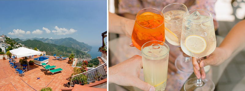 Herefter går vi tilbage til Hotel Bonadies – hvor vi får lokale smagsprøver af både flydende og fast karakter og, hvor vi fra hotellets terrasse kan se udover kysten. Ønsker man lidt mere Ravello kan det stadig nås – eller man kan blive og nyde en aperitivo på hotellets terrasse inden turen i bussen tilbage til Vietri sul Mare sidst på eftermiddagen.
