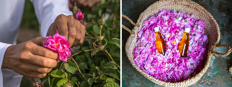Billede: Rosenblade og rosenvand.