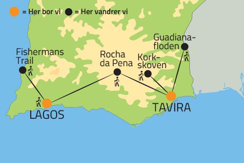 Dag 2: Vandring: Ved den spanske grænse og Guadiana-floden (13 km) med frokost. Besøg i Tavira (M,F,A)