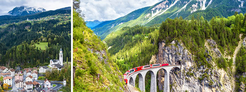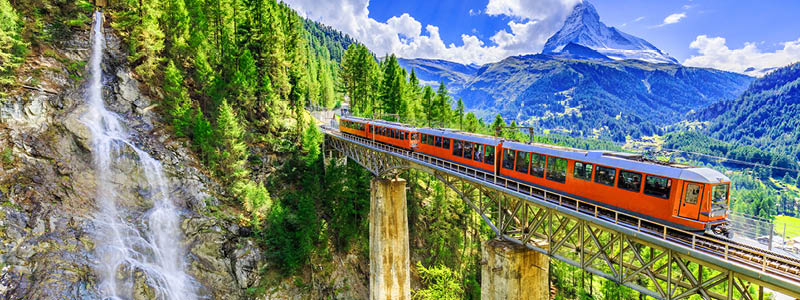 Derefter følger spektakulære togrejser, der begynder i Italien og tager os over høje bjergpas til Schweiz, med Bernina-ekspressen. På den verdensberømte Gletsjer-ekspres i Schweiz – en af verdens smukkeste togrejser, der er optaget på UNESCOs verdensarvsliste – bliver oplevelserne ikke mindre – hvor floder krydses og tunneller passeres i roligt tempo, og vi nyder en frokost. Elsker man bjerge og togbaner – så er der en særlig oplevelse i Matterhorns skygge i vente, når vi stiger ombord på den historiske Gornergrat Bahn.