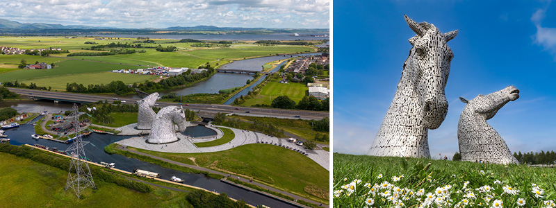 På vores sidste dag i det smukke Skotland tjekker vi ud fra hotellet i højlandet og begiver os ned gennem det skotske landskab, på vej mod lufthavnen. Undervejs stopper vi ved de imponerende kelpier, to 30 meter høje hesteskulpturer i The Helix Park nær Falkirk.