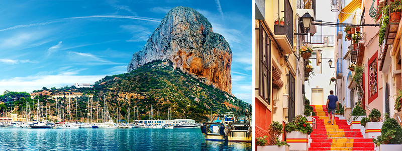 I L'Albir strækker de to strande Playa L'Albir og Playa Cap Blanc sig langs Middelhavets krystalklare vand, og i Calpe finder vi den lange, skønne Playa de la Fossa samt det ikoniske bjerg Peñon de Ifach – en 332 meter høj kalkstensklippe, der er blevet et symbol for hele kysten. Uanset hvor du bor på din rejse, er det let at nyde Costa Blancas spektakulære naturlige skønhed og behagelige klima.