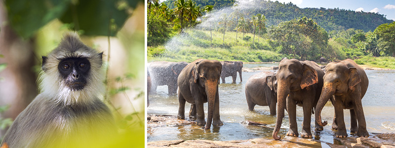 Billede: Aber og elefanter i Minneriya Nationalpark.