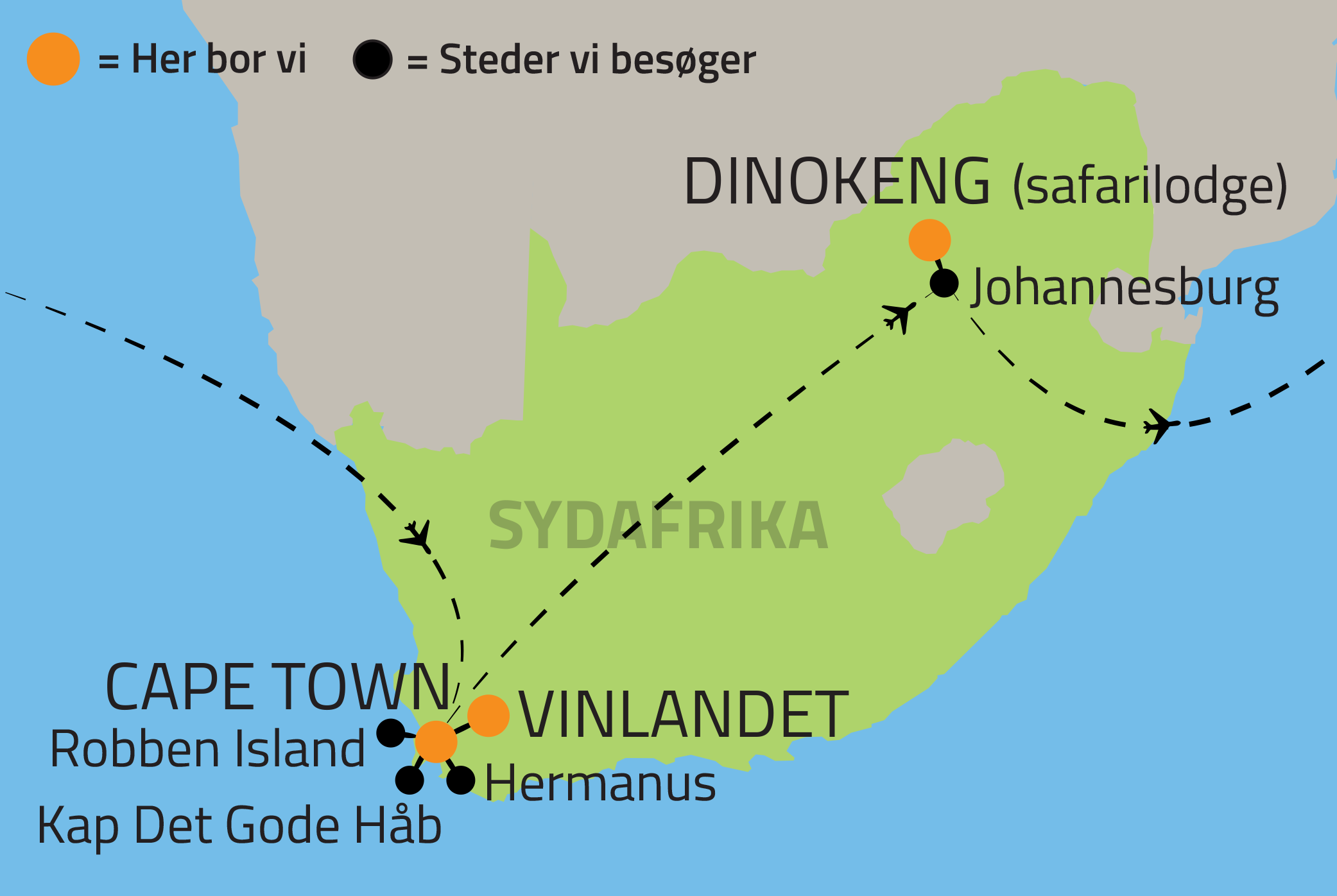 • Fly København - Cape Town / Johannesburg - København med flyskifte i Addis Ababa t/r