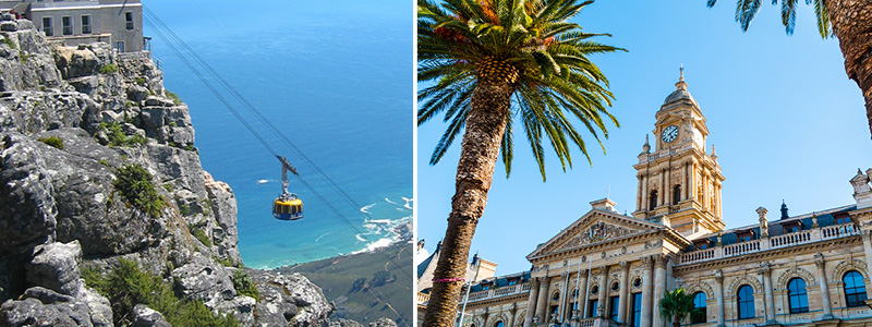 Billeder: Kabelbanen og Cape Towns rådhus.