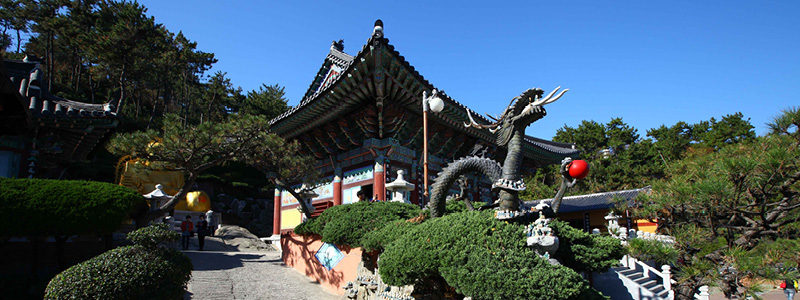 Efter frokost fortsætter vi til Busan, hvor vi besøger Haedong Yonggungsa templet, et stort og smukt tempel, der som et af de få i Korea ligger ved havet.