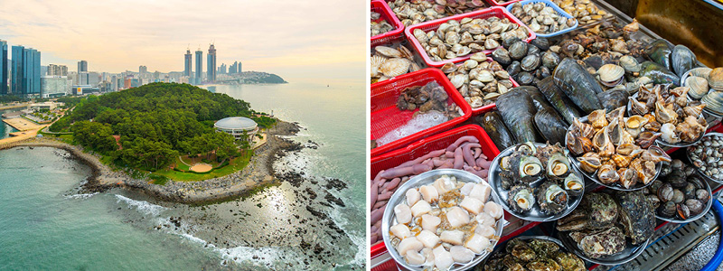 Vi begynder med en tur til Dongbaek Island, også kaldet Kamelia øen, kendt for sine naturskønne stier og udsigt over havet. Derefter besøger vi FN-kirkegården, et rørende sted til ære for de faldne soldater fra Korea-krigen. Vi går på det glasbelagte dæk ved Oryukdo Skywalk, og på det verdensberømte Jagalchi Fish Market, Koreas største fiskemarked, oplever vi den pulserende stemning og får mulighed for at se noget nær alle de slags vandbaserede væsner, som man overhovedet kan forestille sig eksisterer. Den friske fisk og skaldyr kan tages med eller spises ved de uformelle boder.