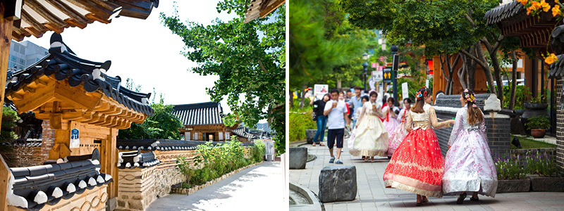 Vi kører videre til vores hotel i Jeonju – en traditionel, koreansk hanok – og efter lidt tid til at blive frisket op begiver vi os til den nærliggende hanok-landsby, hvor vi nyder en dejlig middag. Jeonju Hanok landsby er optaget på UNESCOs Verdensarvsliste som den største hanok-landsby i Korea, med over 700 traditionelle hanok-huse. Efter middagen går vi en tur i den charmerende landsby og indsnuser stemningen af forgangne tider, før vi vender tilbage til hotellet, der også er en oplevelse i sig selv.